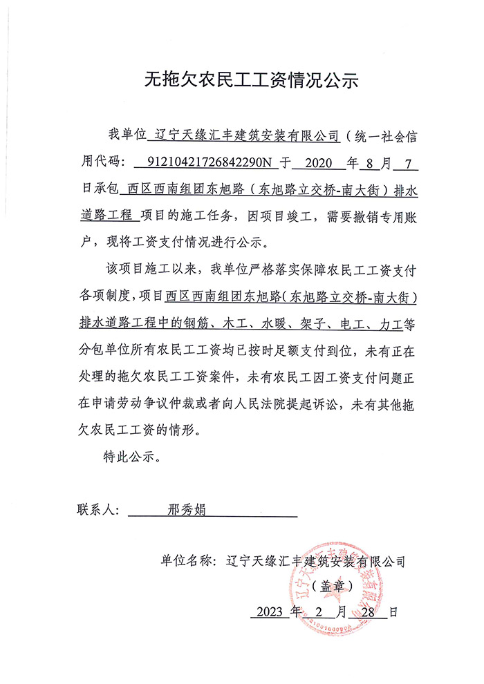 無拖欠農民工工資情況公示